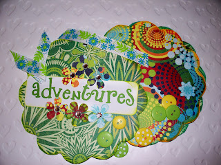 As you can see, there's lots of color happening here and I'm just including some of the embellishments I'm going to use as it goes along. Have to let it happen along the way and then figure out how to jazz it up. (In case you are wondering, this is Lime Rickey paper line from Basic Grey)